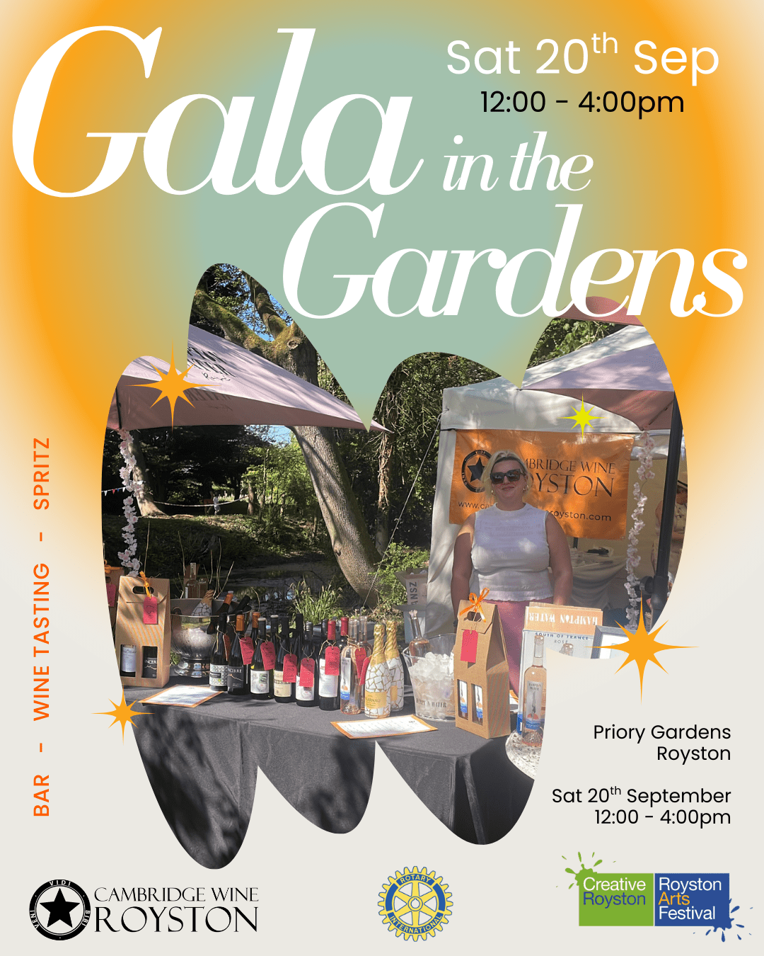 “Gala In The Gardens The staging of this popular event would not have been possible this year without the kind assistance of members of the Rotary Club of Royston who joined Creative Royston as volunteers and in one case as a member of the festival committee. They brought us their experience of organising Royston Kite Festival and other events and took the lead in organising the range of family oriented entertainments and activities that you would normally find at this event. Expect children’s entertainment & free face painting and henna art; music; food; workshops and a wide range of stalls both commercial and publicising ongoing activities and opportunities in the town. Free to attend Saturday 20 September, 12 noon – 4pm”